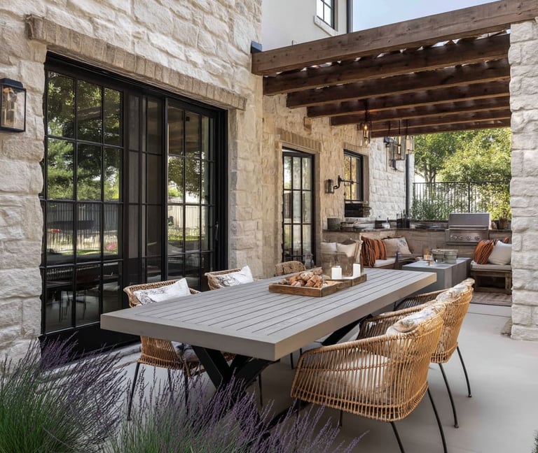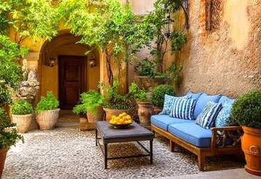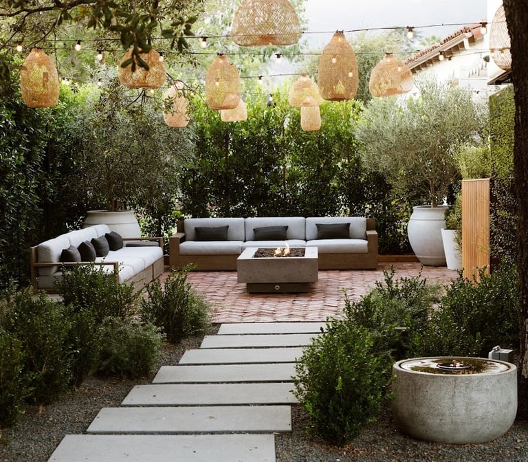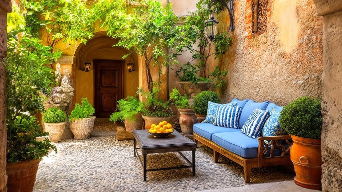 Mediterranean-style outdoor spaces are warm, earthy, and inviting. Inspired by homes in places like Santorini and Barcelona, this style features terracotta, natural stone, and lush greenery.