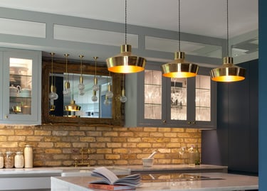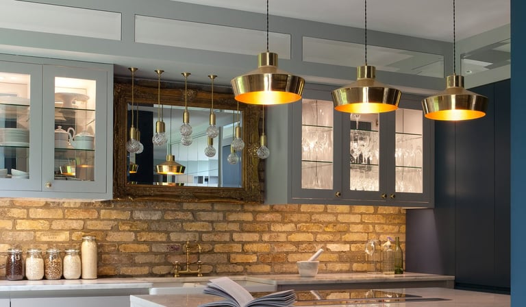 Nothing says “designer kitchen” like a row of pendant lights. Choose clear glass for a sleek, airy look, or go bold with matte black or brass finishes.