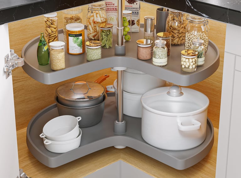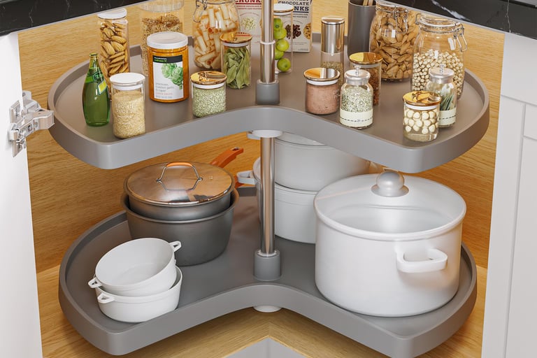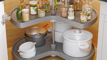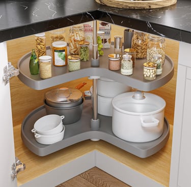 Corners and deep cabinets often turn into black holes. A rotating lazy Susan makes spices, oils, and condiments easy to access—and no more expired jars hiding in the back!