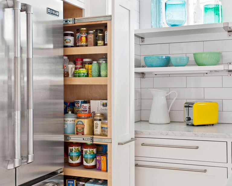 If you’re short on pantry space, consider narrow pull-out racks that fit between appliances or cabinets. They’re perfect for storing canned goods, spices, or crisps.