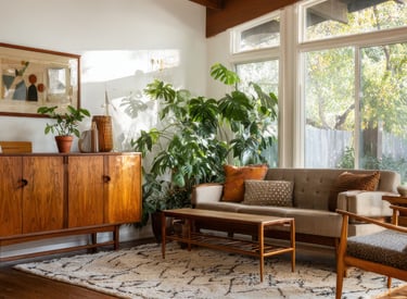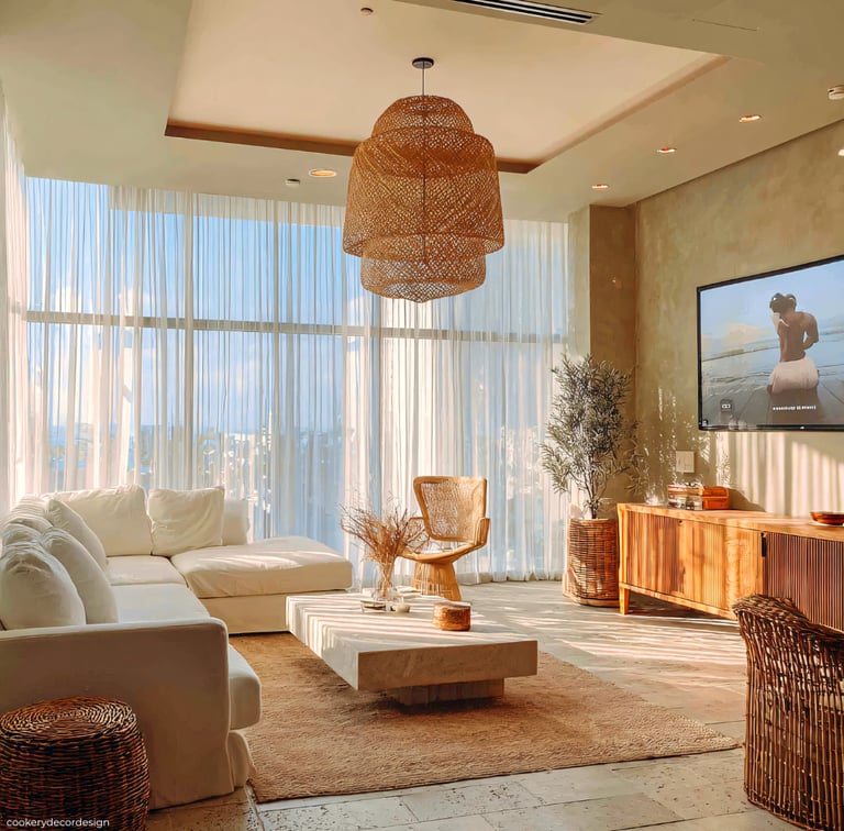 You can also bring in natural textures through wood side tables, woven baskets, or stone décor pieces. These subtle details help the living room feel layered, warm, and thoughtfully designed.