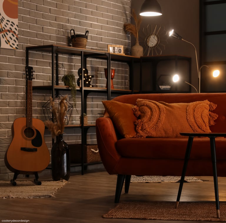 A modern floor lamp with a sculptural base or a brass or black metal table lamp instantly adds a designer touch. Warm lighting is key—using soft white or warm LED bulbs creates a cozy, upscale ambiance rather than harsh brightness.