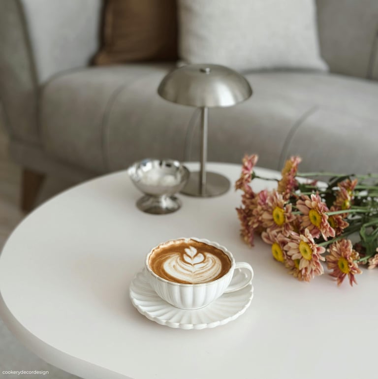 A round or oval coffee table, especially in wood, marble-effect, or glass, creates a clean focal point. Styling it with a decorative tray, a hardcover coffee table book, and a ceramic or stone vase keeps the look simple but elevated. Even something as small as choosing a sculptural vase over a basic one can dramatically change the feel of the room.