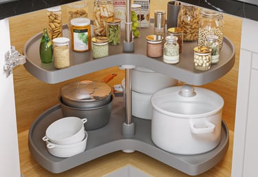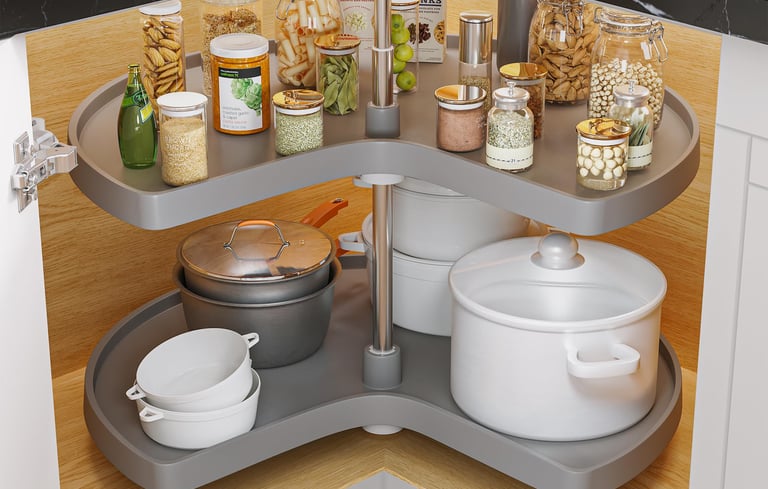 Corners and deep cabinets often turn into black holes. A rotating lazy Susan makes spices, oils, and condiments easy to access—and no more expired jars hiding in the back!