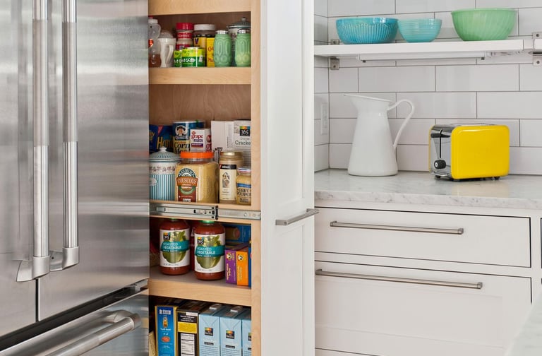 If you’re short on pantry space, consider narrow pull-out racks that fit between appliances or cabinets. They’re perfect for storing canned goods, spices, or crisps.